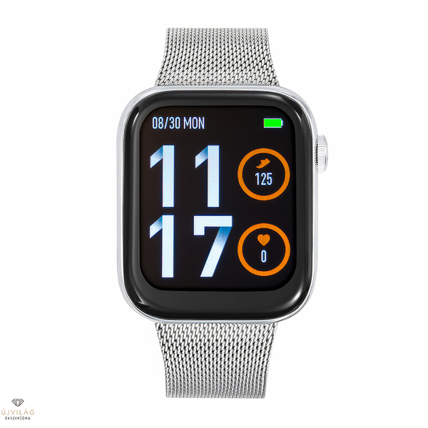 Érintőképernyős Okosóra funkciók: Távolságmérés, Értesítések, Üzenetek, Zene irányítás, Pulzusmérő, Alvásfigyelés, Testmozgás mérés, Lépésszámlálás, Vérnyomásmérés, Véroxigén mérés, Időjárás, Elemlámpa funkció