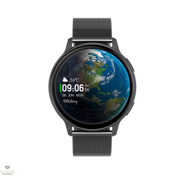 Érintőképernyős Okosóra funkciók: Távolságmérés, Értesítések, Üzenetek, Zene irányítás, Pulzusmérő, Alvásfigyelés, Testmozgás mérés, Lépésszámlálás, Vérnyomásmérés, Véroxigén mérés, Időjárás, Elemlámpa funkció