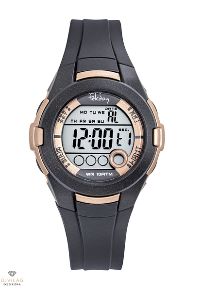 A francia cég célkitűzése, hogy strapabíró, pontos és megbízható karórákat tervezzen megfizethető áron - ez a TEKDAY. A karóra funkciói: 24 órás kijelző, Dátum, Ébresztés, Nap neve kijelzés, Stopper, Világítás, Visszaszámláló funkció. A tok átmérője 36 mm. Vízállósága 100 méter, így fürdésre - úszásra is alkalmas a használati útmutatóban leírtak betartásával!