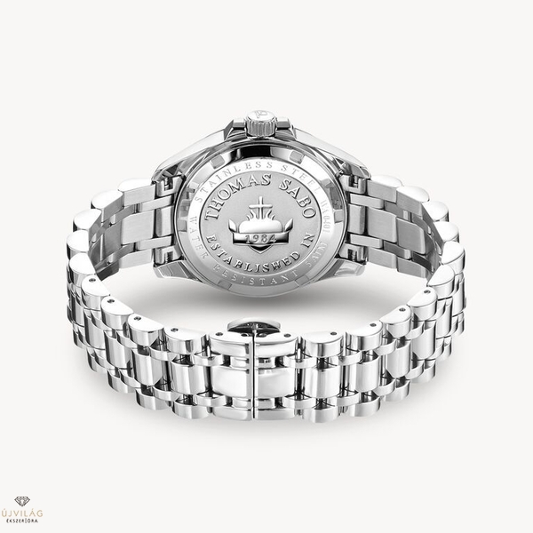 A csuklón viselt óra klasszikus, masszív rozsdamentes acél karkötővel rendelkezik, amelynek hossza az egyes láncszemek eltávolításával állítható.