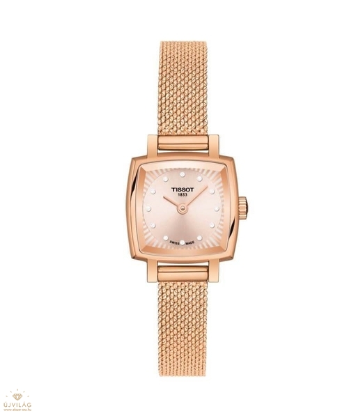 A Tissot Lovelyt a diszkrét kifinomultságot kereső nők számára tervezték. Önállóan vagy kedvenc karkötőinek kiegészítéseként is viselhető. Minden Tissot Lovely órát precíz svájci gyártmányú kvarcóra hajt, így éjjel-nappal lépést tarthatsz az idővel. A modell 316L rozsdamentes acélból készült, rózsaarany színű PVD bevonattal ellátott tokkal és 12 gyémánttal kirakott hibátlan, sima pezsgőszínű számlapjával rendelkezik.