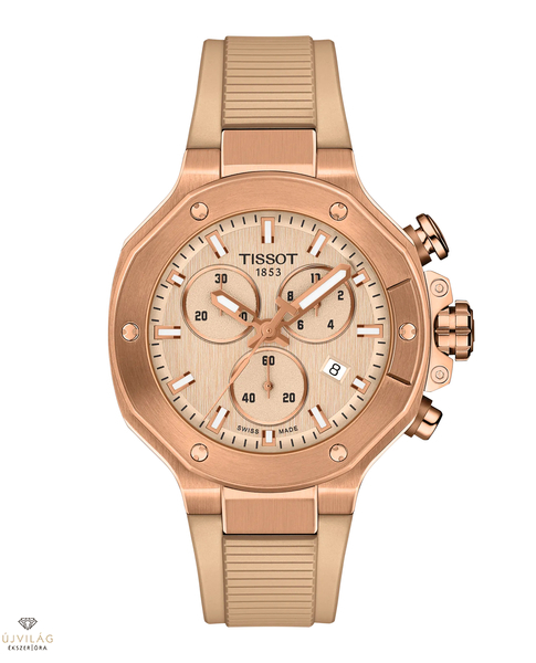 A Tissot a motorversenyzéssel való partnerségéből merített ihletet, hogy olyan órát hozzon létre, amely tükrözi a motorok dinamizmusát és a sport izgalmát... A T-Race kollekció a viselőjét mechanikus környezetbe meríti és felébreszti a szellemet. A keret féktárcsára emlékeztet, a nyomógombok a kormányról inspirálódtak, a tok oldalán pedig a motor hűtőbordái láthatók. Az óra 10 bar (100 m) vízállóságú és kvarc kronográf mozgással rendelkezik.