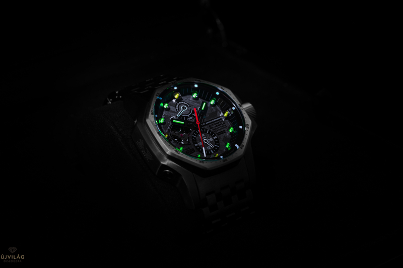 Az óra számlapja egy különleges "geniune meteorite"/ közetanyag/ anyagból készült, amelyet domború K1 kristály véd. A számlap világításáért a SuperLuminova bevonat felel, a mutatókon, valamint indexeken pedig trícium csövek biztosítják a ragyogást.