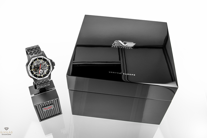 A különleges karórához exkluzív csomagolás társul, amely feketére lakkozott tömör fából készül.