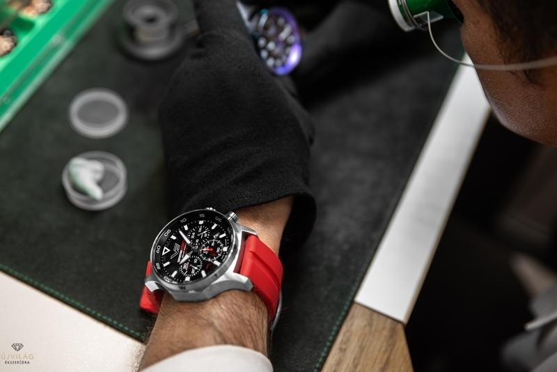 Az óra valódi bőrszíjjal vagy tartós szilikonszíjjal is kapható, így viselője kiválaszthatja a stílusának és igényeinek leginkább megfelelő stílust. Méretek: Ø 43 x 15,4 mm (tüskétől tüskéig 52,6 mm), Szíj szélesség: 22 mm.