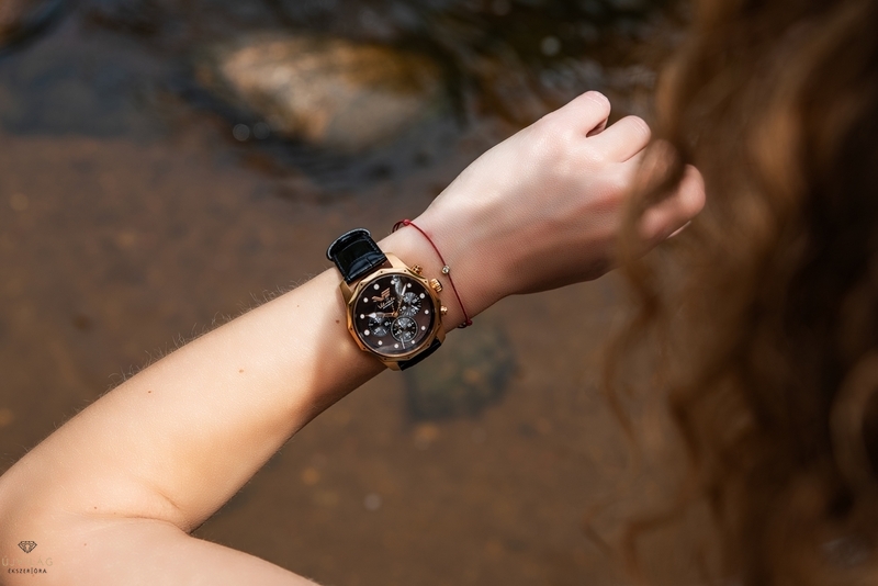 A Vilnelė folyó ihlette női kronográf természetes eleganciát ötvöz modern sokoldalúsággal. A rozsdamentes acél tok hullám alakú kerettel rendelkezik, amely a víz mozgását idézi, és tökéletesen illeszkedik az opcionális integrált acél karkötőhöz vagy a mellékelt bőr és szilikon szíjakhoz. A pontos Miyota kvarc kronográf mozgással működő óra gradiens festésű számlappal rendelkezik, amelynek színe a folyó víz fényének változásához hasonlóan változik. A kis számlapok további funkcionalitást nyújtanak a stílus rovására. Zafírkristály üveggel és 100 méteres vízállósággal ellátva tökéletesen alkalmas a mindennapi élethez és a szabadtéri tevékenységekhez.